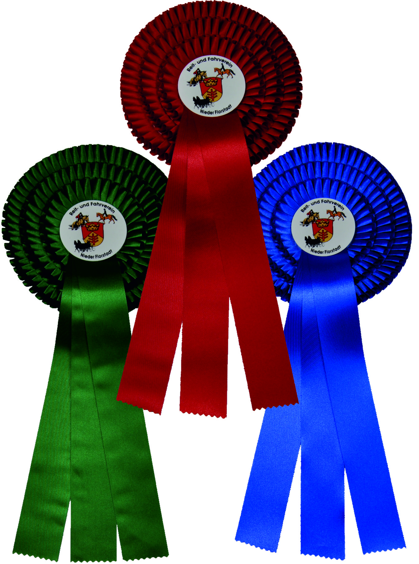"Athen" Turnierschleife mit Dreifachrosette in den Platzierungsfarben