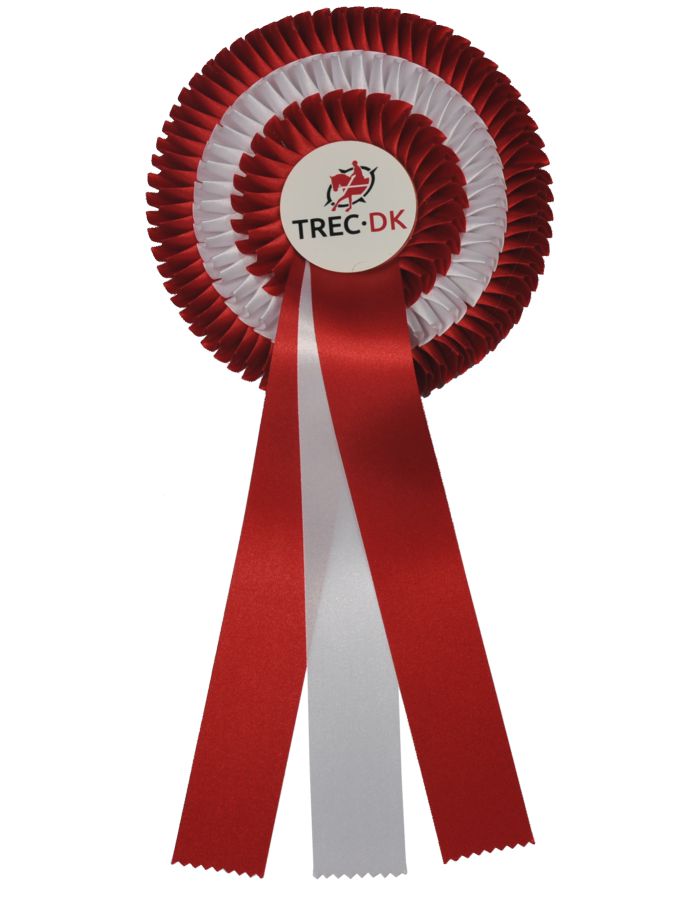 "Madrid" Turnierschleife mit Dreifachrosette in rot weißer Kombination