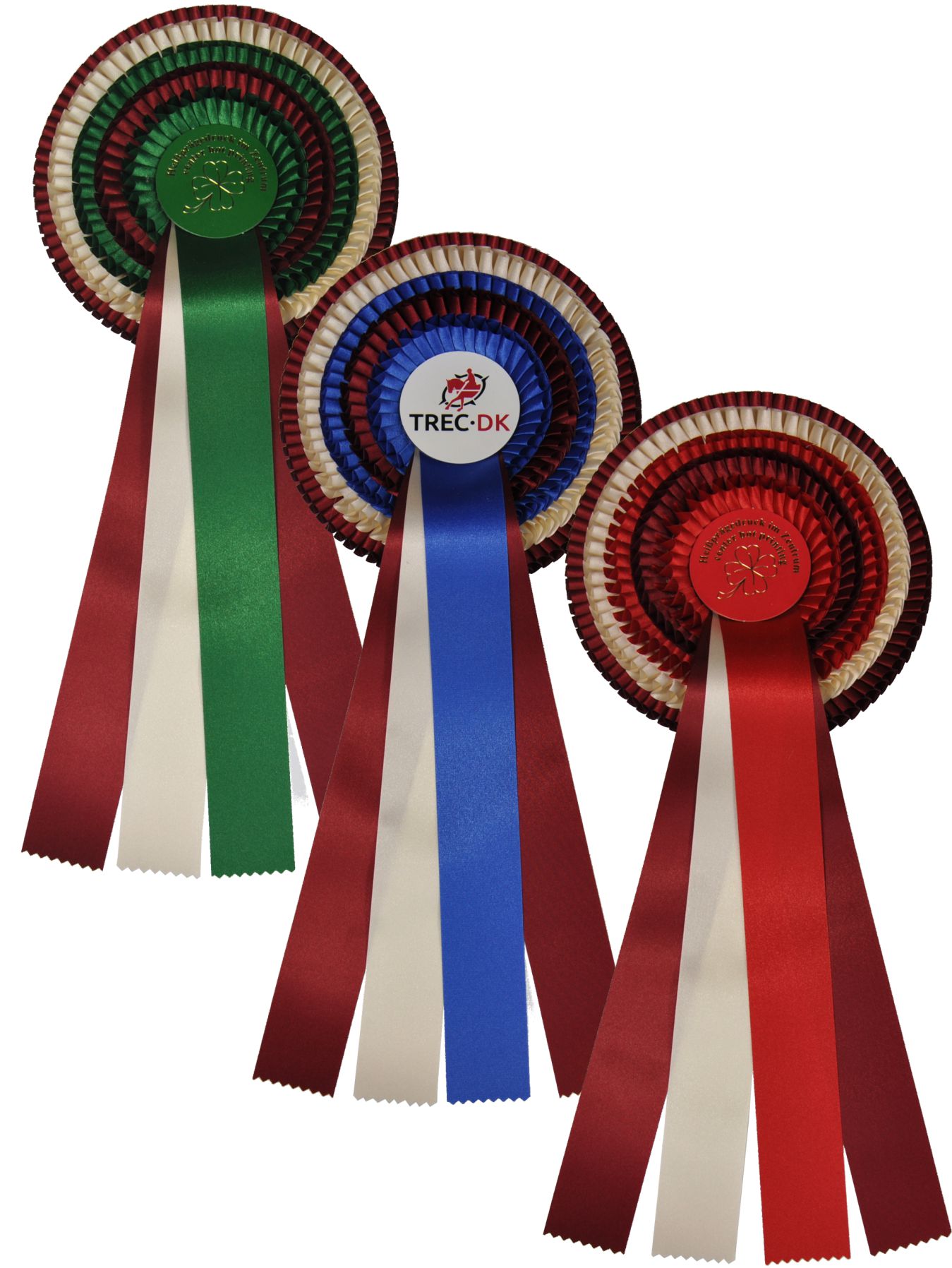 Dann suchen Sie nicht weiter: "Nürnberg" ist Ihre perfekte Wahl. Die Fünffachrosette in light und premium Qualität betont die Platzierungsfarbe als dritten und fünften Ring in Kombination mit einem champagner farbigen Ring und dem passenden Zentrum in Platzierungsfarbe. Den Kontrast bilden zwei dunkelrote Ringe an erster und vierter Position der Schleife. Passend kombiniert wird diese Rosette mit vier 35 cm langen Bändern, die Farbe dunkelrot rahmt das champagnerfarbene Band zusammen mit der passenden Platzierungsfarbe edel ein.