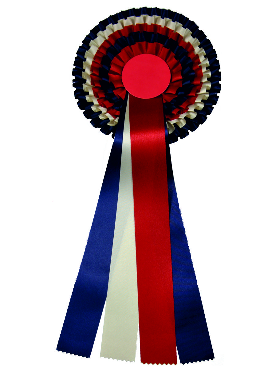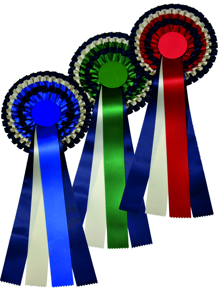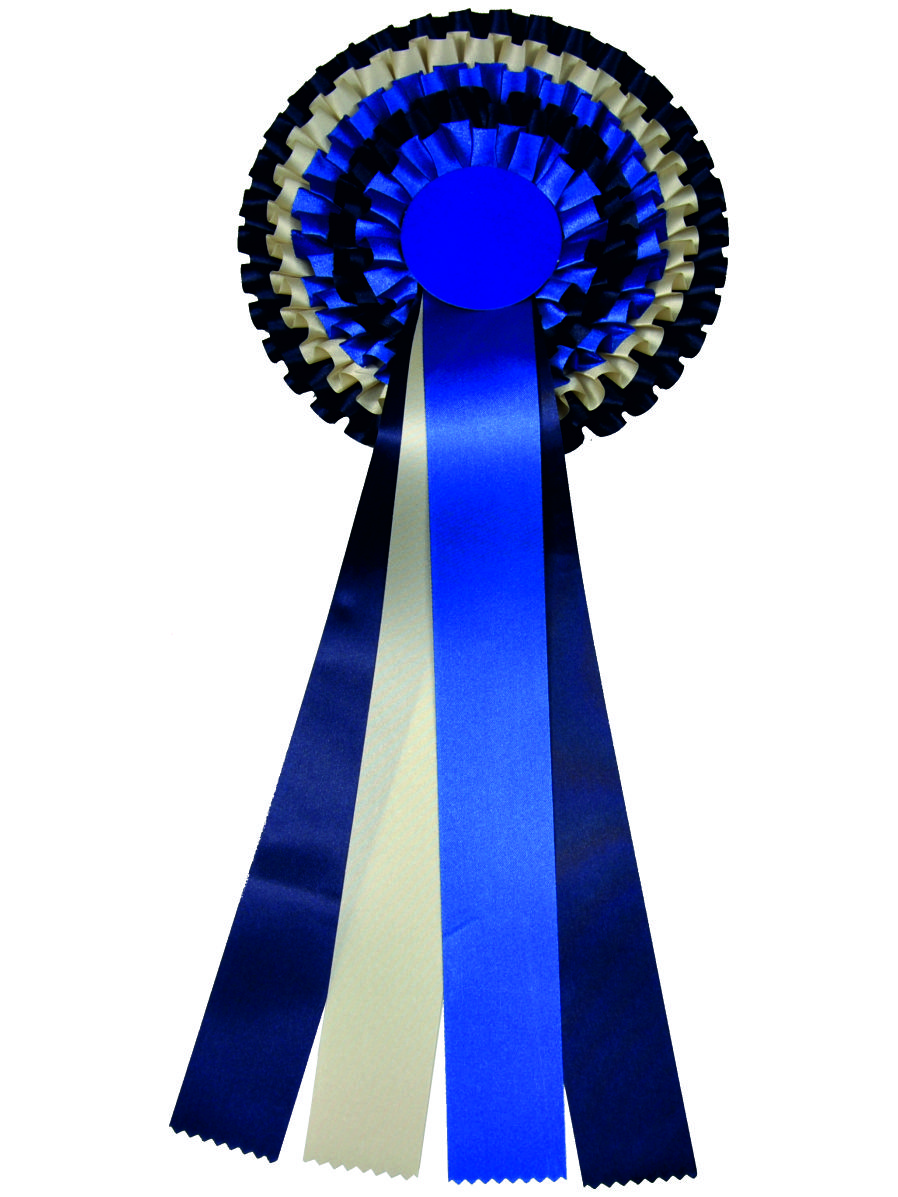 Large five-fold rosette with four ribbons. A tournament loop with a very affordable price-performance ratio.
